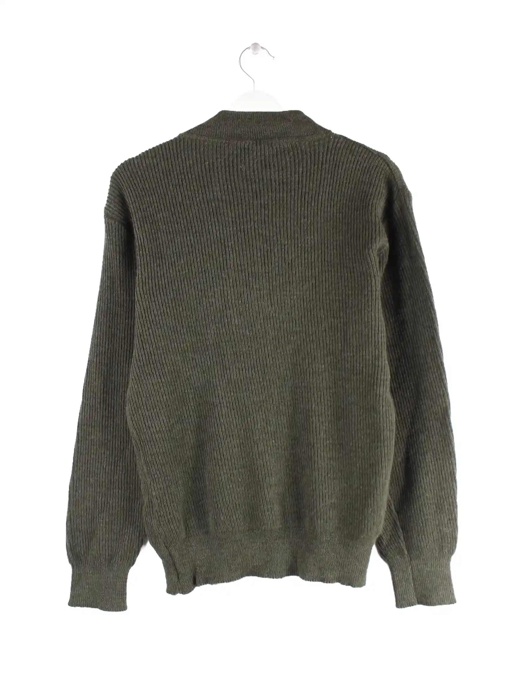 Grüner Vintage Pullover mit kurzem Reißverschluß in Größe S. Er ist aus Baumwolle gemacht und in sehr gutem Zustand bei uns zu bekommen.