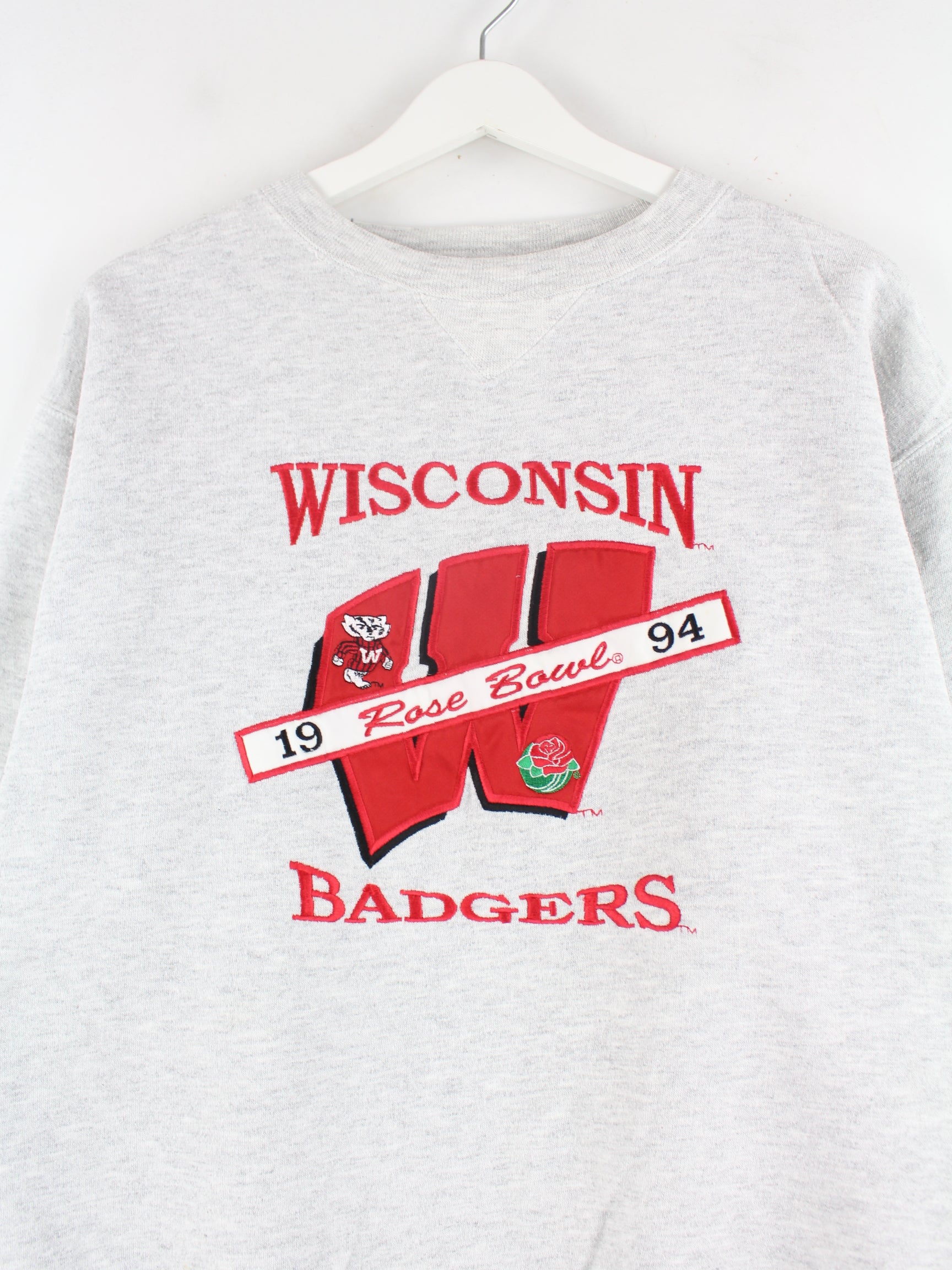 Vintage 1994 Vintage Wisconsin Rose Bowl Embroidered Sweater Grau XL