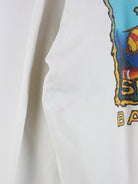 Weißer Vintage Sweater in Größe XL. Er ist aus einer Baumwollmischung angefertigt und in gutem Zustand bei uns vorrätig. Mit schickem Bayview Print.