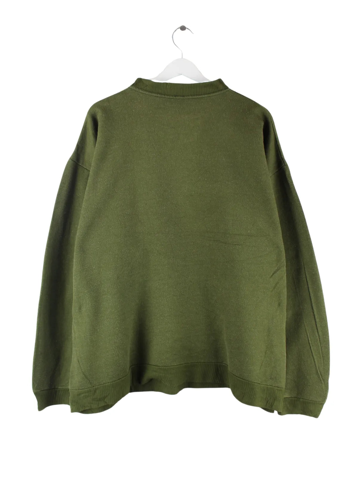 Vintage Sweater mit gestickten Motiven in Größe XL aus den 80'ern. Er ist aus einer Baumwollmischung angefertigt und in Grün zu haben.