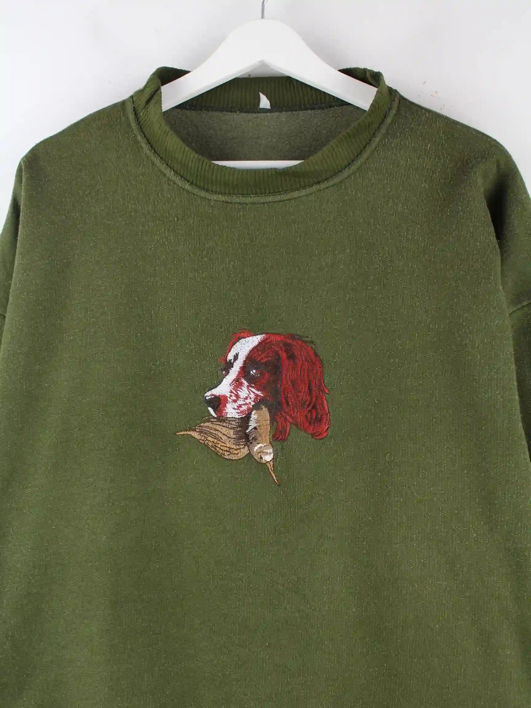 Vintage 80s Dog Embroidered Sweater Grün XL
