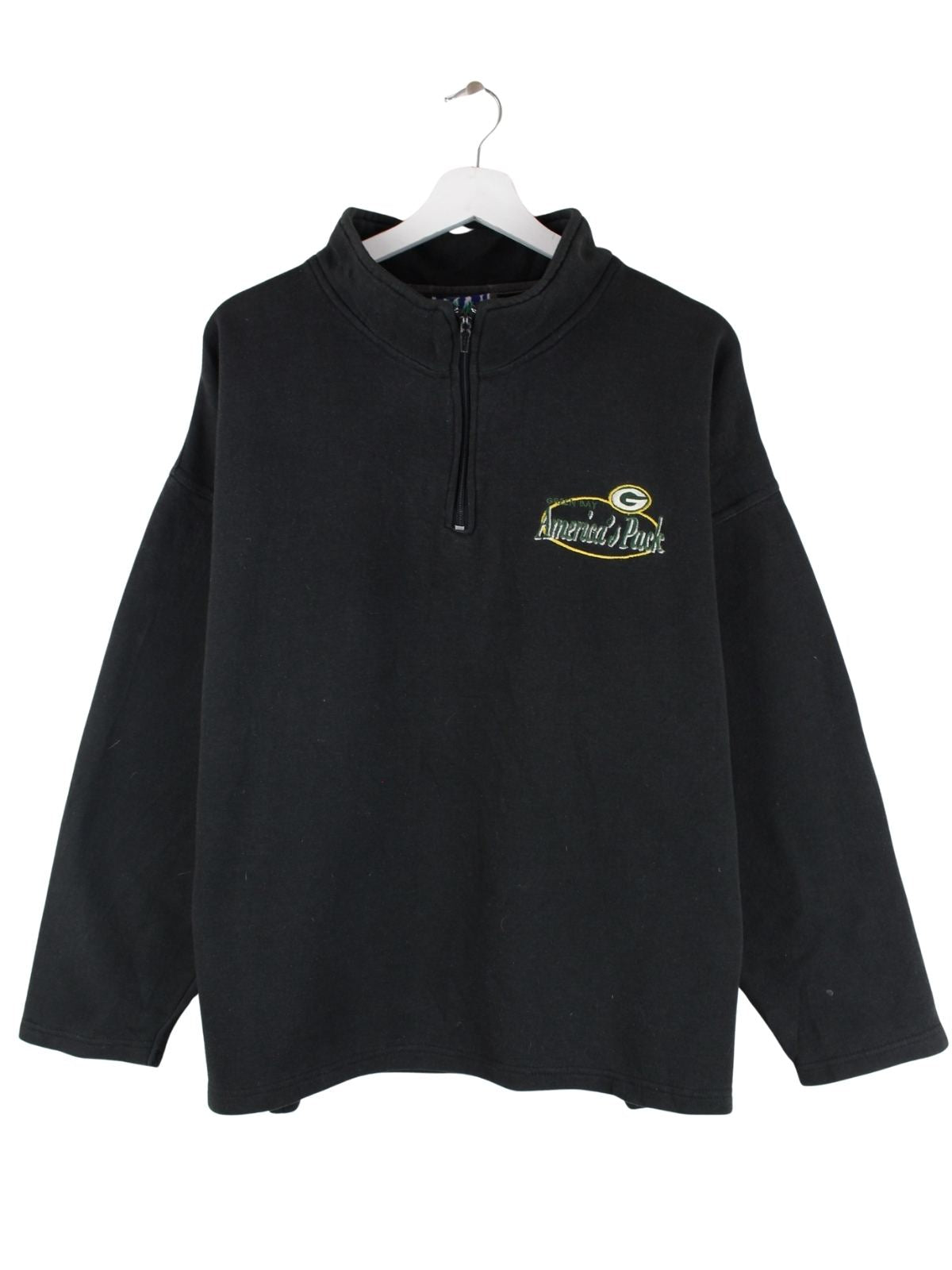 Vintage 80s Green Bay Packers Half Zip Sweater Schwarz M