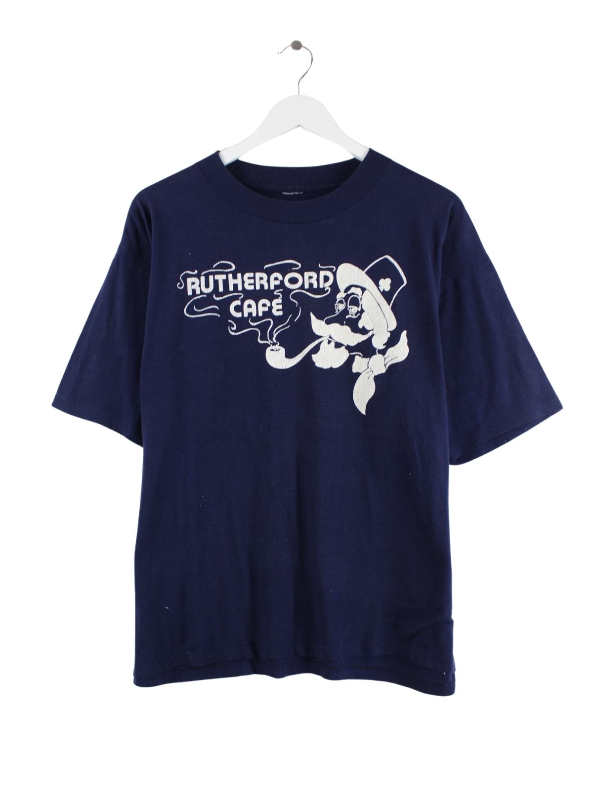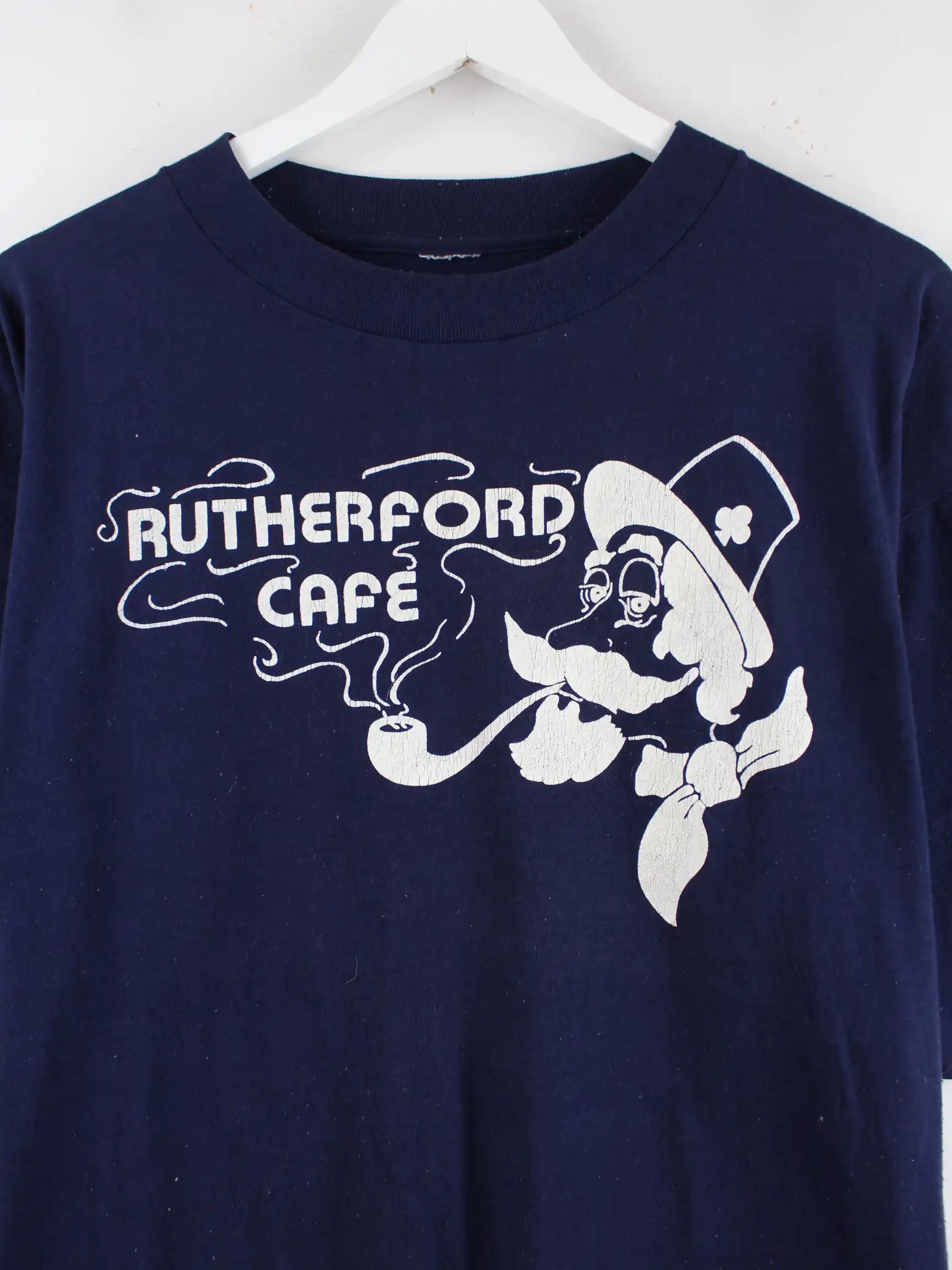 Vintage 80s Rutherford Cafe Print Single Stitch T-Shirt Blau M