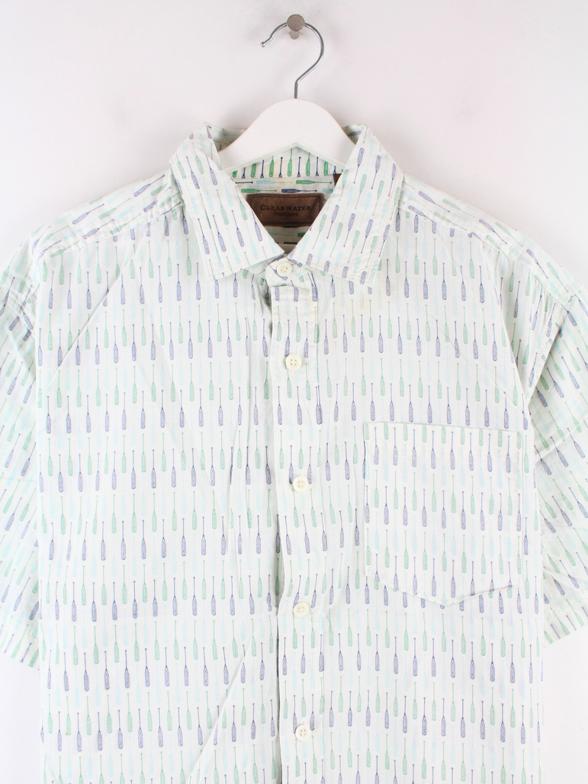 Grünes Vintage Freizeit Hemd aus den 90'ern in Größe L. Es ist aus Baumwolle und in gutem Zustand in Stock.