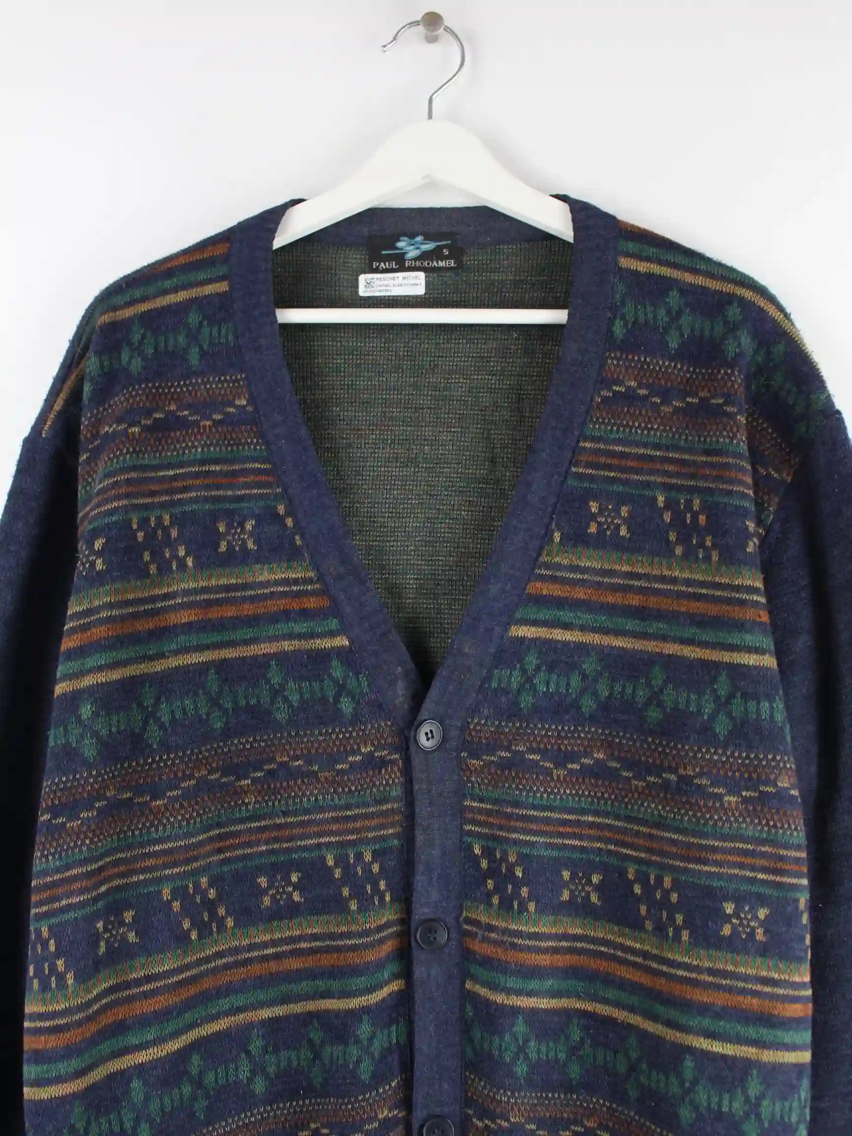 Blaue Vintage Strickjacke aus den 90'ern in Größe M. Sie ist aus Baumwolle gefertigt und in sehr gutem Zustand bei uns zu bekommen.