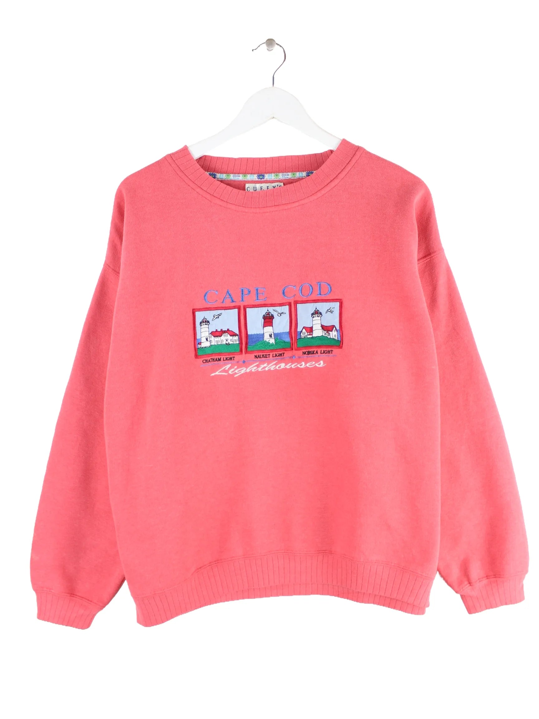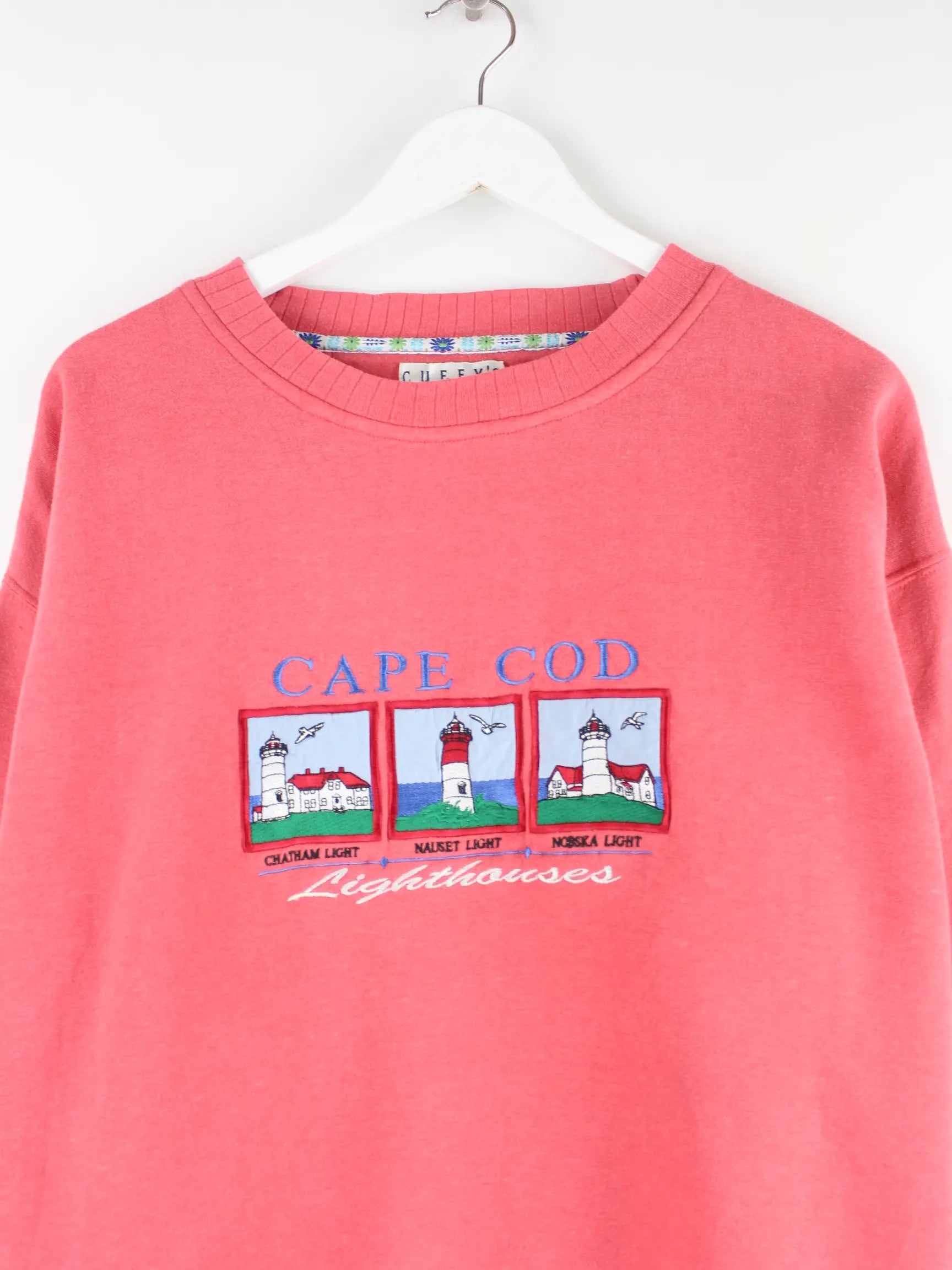 Vintage Damen 90s Cape Cod Lighthouses Sweater Rot M