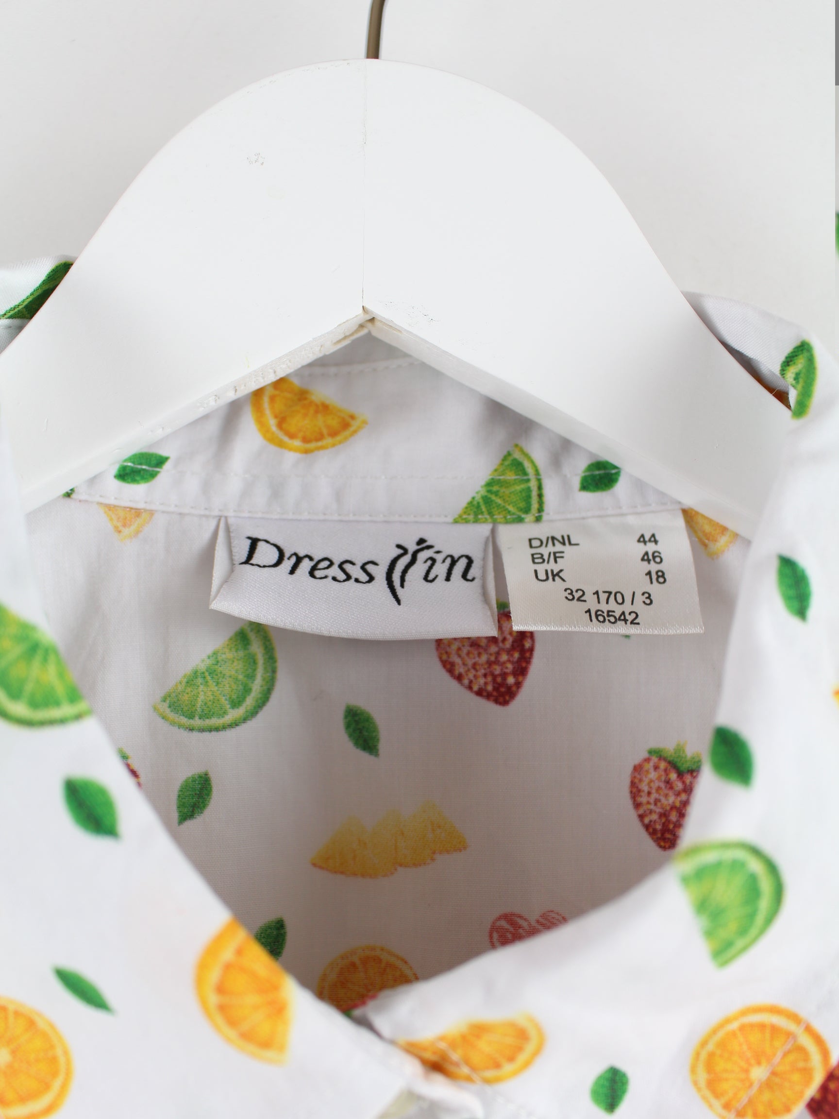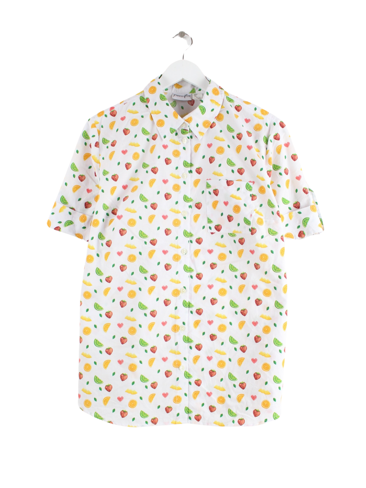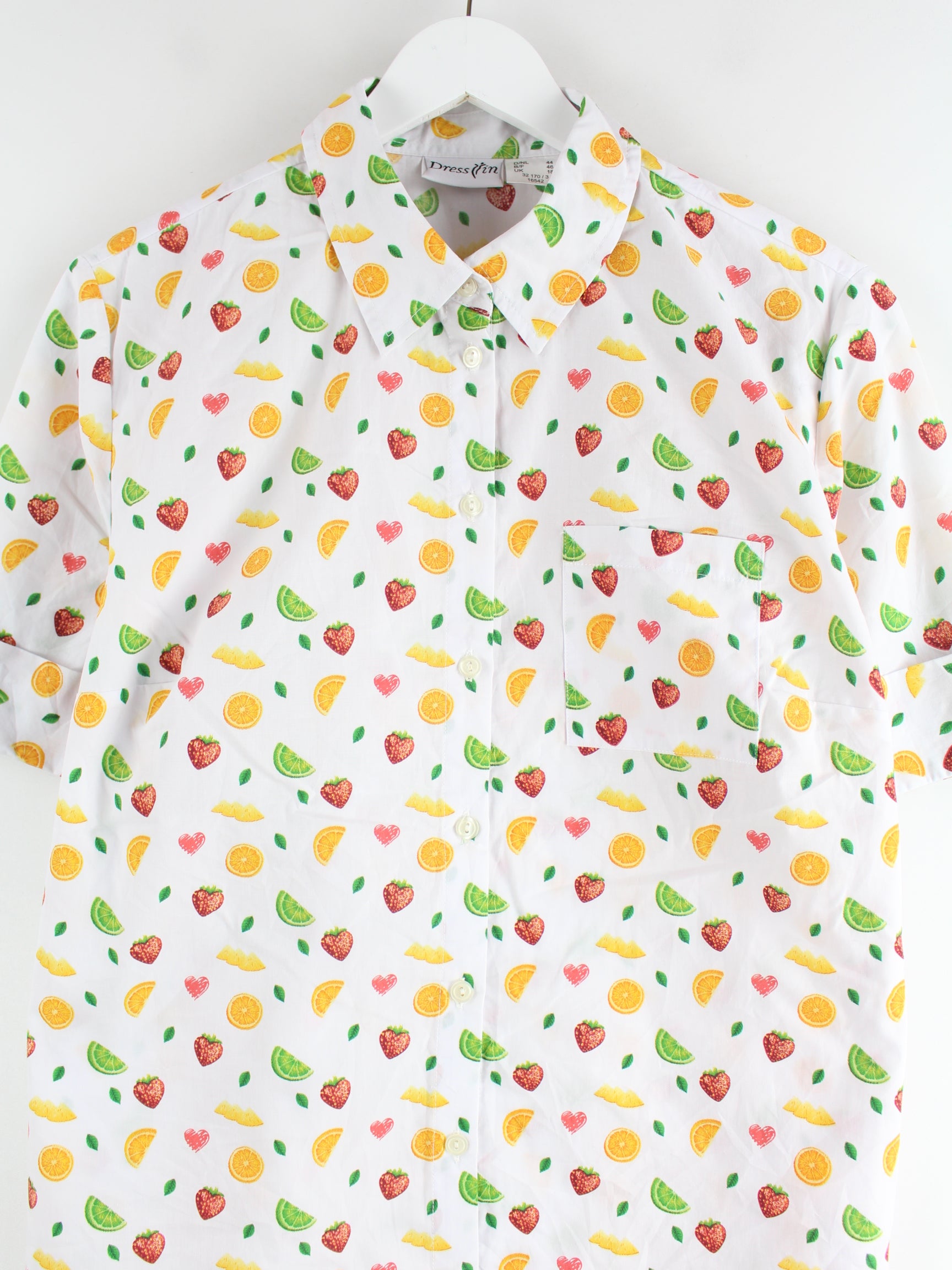 Vintage y2k Fruit Pattern Kurzarm Hemd Weiß M