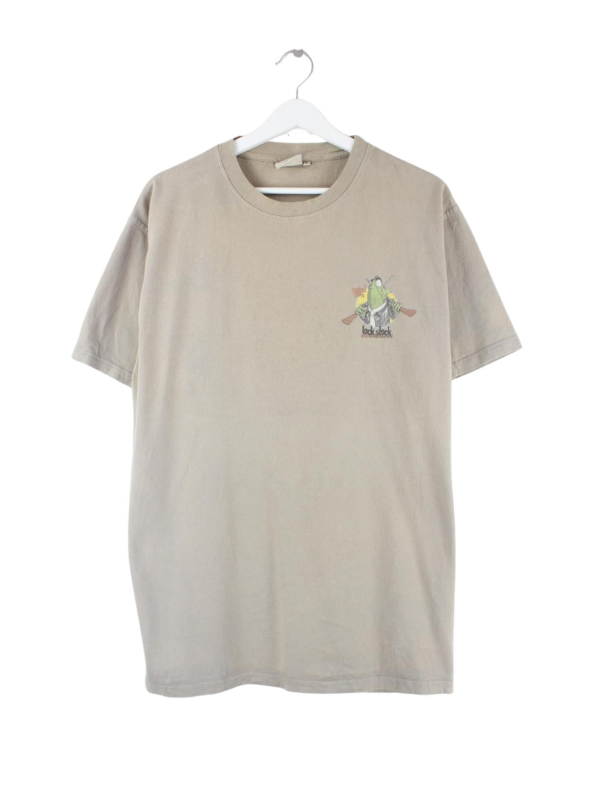 Braunes T-Shirt der Brand Weird Fish in Größe L. Es ist aus Baumwolle gefertigt und in gutem Zustand vorrätig. Mit seltenem Print.