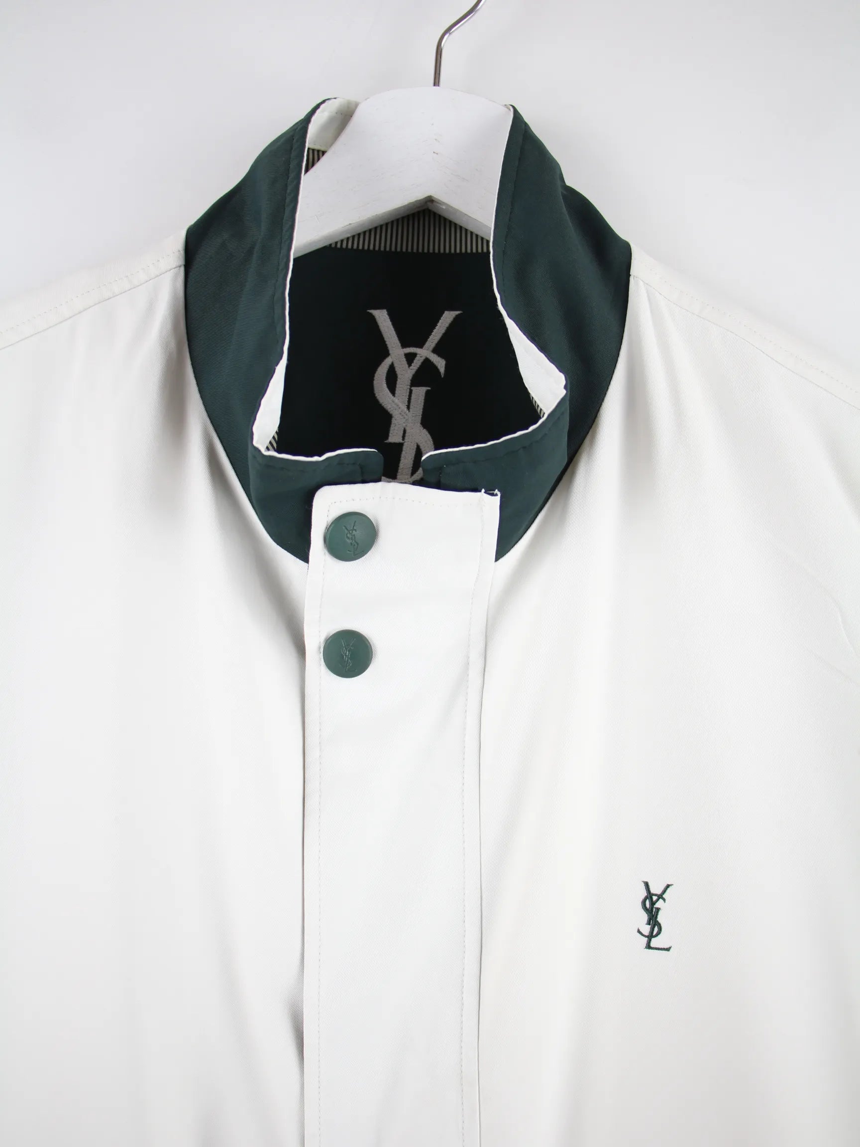 Leichte Jacke der Marke Yves Saint Laurent in Größe S. Sie ist aus Synthetik gefertigt und in Weiß zu haben.